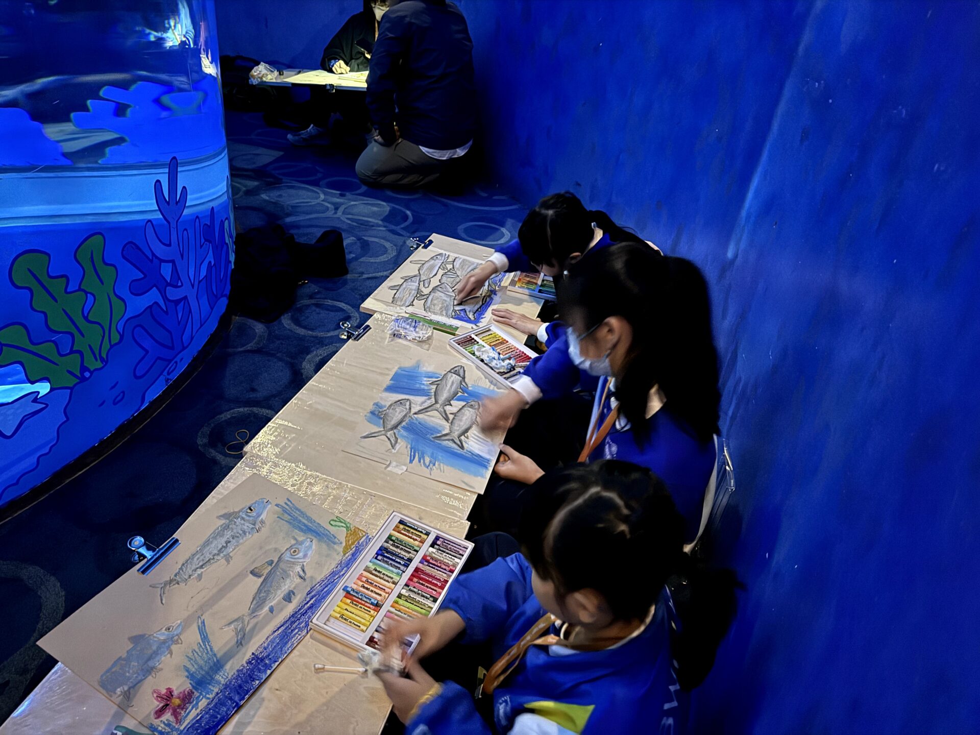 本校師生一同走進海洋公園,參加由教育局合辦的「邊學·邊畫」繪畫比賽2025/2026。在巨大的水族箱前,同學們化身為小觀察家,用最細膩的眼光捕捉牛奶魚游弋的神態。縱然只有三小時的創作時間,大家仍竭盡全力,把眼前的海洋美景轉化為一幅幅動人的作品。