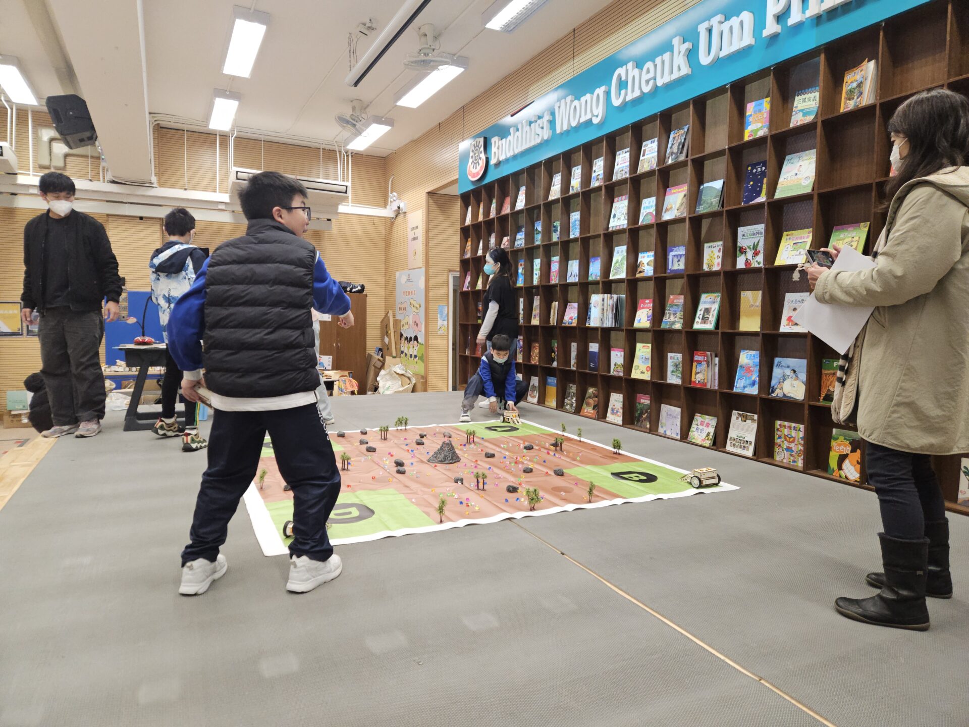 校內舉辦「STEAM機甲戰車爭霸賽」,學生需自行組裝戰車,在限定時間內搬运寶石爭奪高分。